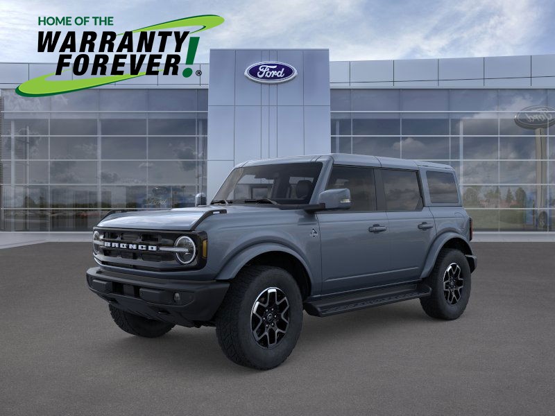 Our New 2025 Ford Bronco Outer Banks 4 Door 4X4 with the High Lux 314A Pack in Azure Gray Metallic Tri-Coat projects confident capability, blending heritage strength with modern polish! Motivated by a TurboCharged 2.7 Liter EcoBoost® V6 delivering 330hp to a 10 Speed Automatic transmission with terrain management. Also featuring a high-performance off-road suspension, this Four Wheel Drive SUV is a fierce adventure machine that runs free off the pavement and sees nearly 21mpg on the highway. Our Bronco’s bold design boasts LED lighting, fog lamps, powder-coated tube steps, alloy wheels, a swing-out tailgate, a removable roof/doors, and white Bronco lettering on the grille.