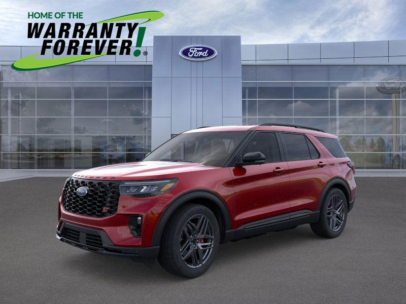 Bold and athletic, our New 2026 Ford Explorer ST 4WD with the Sun & Sound Pack and Ford Connectivity Pack in Rapid Red Metallic blends dynamic design with all-weather capability. Powered by a Twin-TurboCharged 3.0 Liter EcoBoost® V6 serving up 400hp to a paddle-shifted 10 Speed Automatic transmission for premium performance. A sport-tuned suspension and Terrain Management help your family take on tricky trails and twisty roads, and this Four Wheel Drive SUV sees nearly 24mpg on the highway. Showing a confident style all its own, our Explorer boasts LED lighting, quad exhaust outlets, a power liftgate, 21-inch wheels, roof rails, and black accents. Be ready to turn heads in this bold SUV!